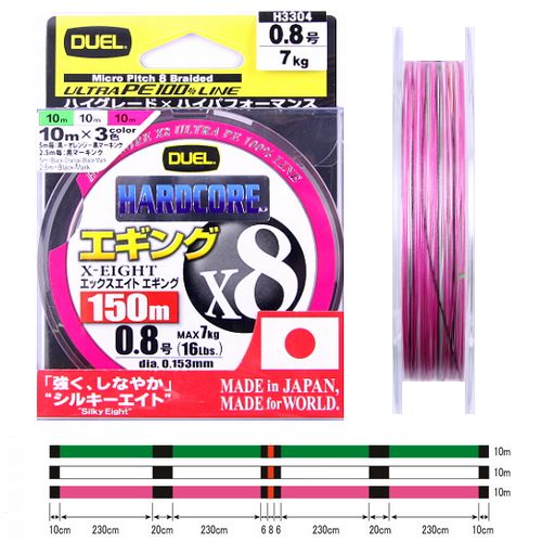 うちにあった0.8号のPEラインはデュエルのハードコアX8エギングがあったのでこれを巻くことに。ベイトリールでしなやかな8本撚りのラインってどうなの?という所ですが、在庫がこれしか無かったのです。前にベイトリールに(ハリのある4本撚りでなくて)8本撚りを巻いた時は、「二度とベイトリールでしなやかなラインは使うものか!」という最悪の印象でしたが、あれからボクのうでも少しは向上したはずなので、これでまた挑戦してみることにします。